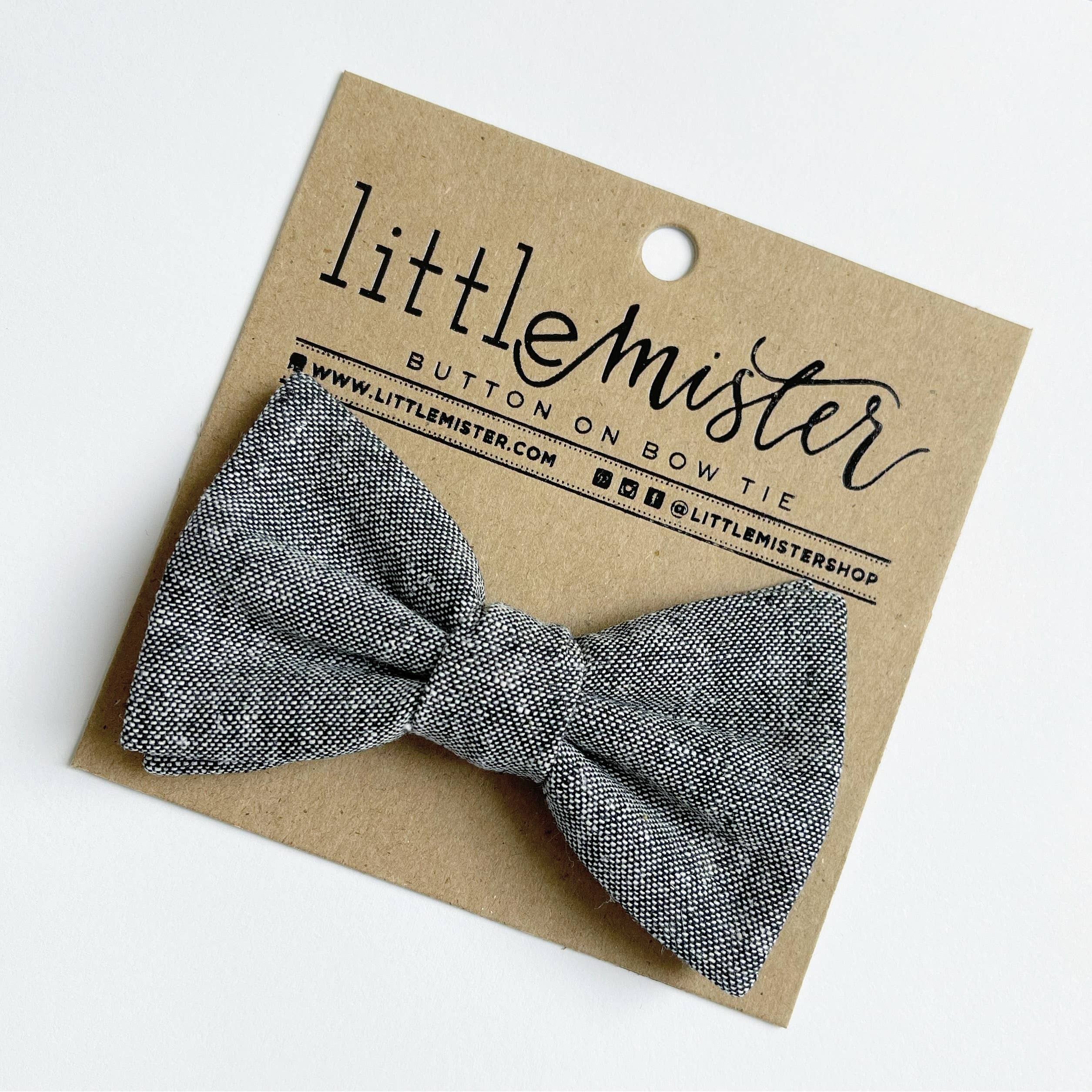 Baby bow ties and toddler bow ties (now available for bigger boys too!) by Little Mister feature a unique button on design that easily attaches to almost any shirt that has a button. Little Mister bow ties are extremely comfortable, they stay on, and most importantly they are safe because they do not wrap around the neck.