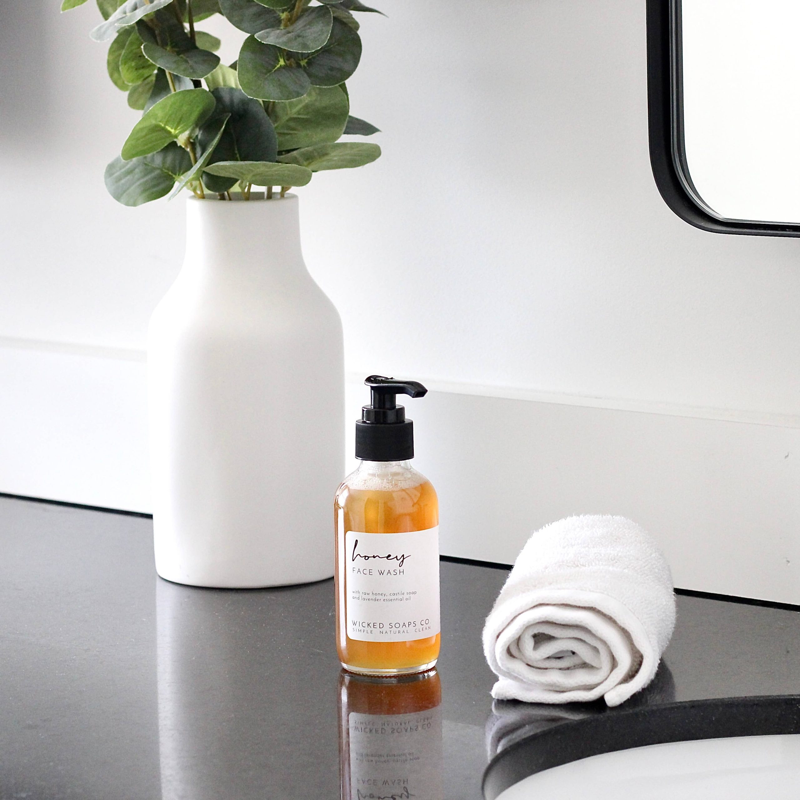 This gentle facial cleanser is formulated with locally sourced raw honey and nourishing castile soap to gently lift debris and cleanse the skin. Honey has antimicrobial properties and is a natural humectant, keeping your skin clear and hydrated while our castile soap removes impurities without overdrying skin, making our Honey Face Wash good for all skin types, including acne-prone or sensitive skin.